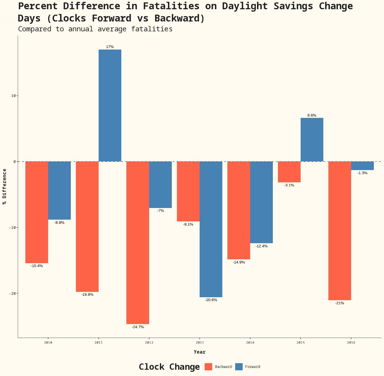 TidyTuesday Week 16: Fatal Car Crashes on DST days
